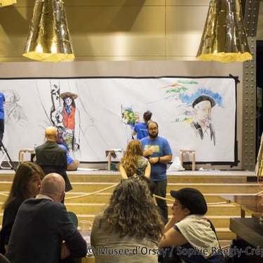 Intégrant arts numériques, impression, et autres modes d’expression graphiques, « les soirées dessinées » ont réalisé des performances variées, mêlant dessin, musique et danse contemporaine (projet Mucha au Musée du Luxembourg, collaboration avec le label Tsuku Boshi en 2018 au musée Guimet), musique et dessin (24h non-stop de dessin en musique pour la fête de la musique 2015).